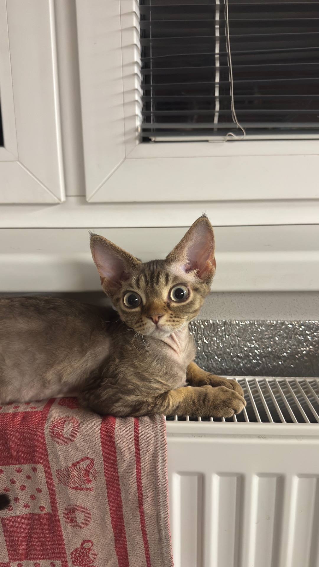 Rozeta je krásna mačička plemena Devon Rex, ktorá pochádza zo zaujímavých a kvalitných európskych chovateľských línií. Už od malička vyniká typickým vzhľadom tohto plemena – veľkými ušami, výraznými očami a jemnou kučeravou srsťou.